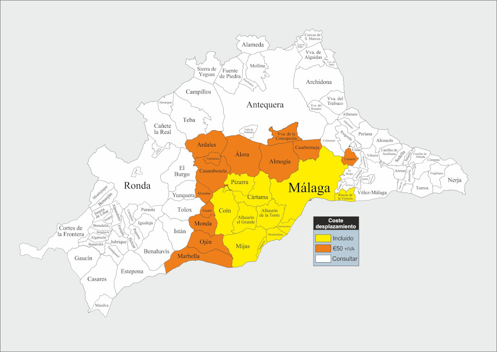 Mis precios incluyen el desplazamiento a cualquier lugar dentro de la zona amarilla mostrada en el mapa más abajo, las oportunas capturas fotográficas interiores y exteriores, el post-procesado y edición del material gráfico, la inserción de documentos opcionales proporcionados por los clientes (textos, grabaciones de audio, videos y archivos pdf), el diseño de la visita virtual y el alojamiento web para visualizaciones ilimitadas durante un año.